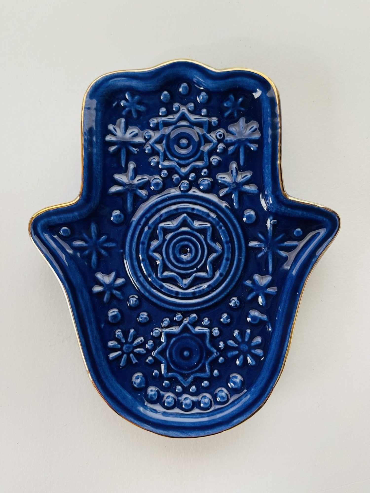 Beautiful ceramic Hand of Hamsa Incense Holder…can be used as a dish for jewellery also.