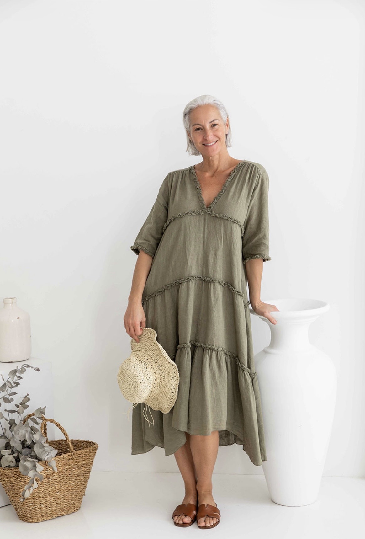 Can easily be dress up or down with accessories…light weight and comfortable.
