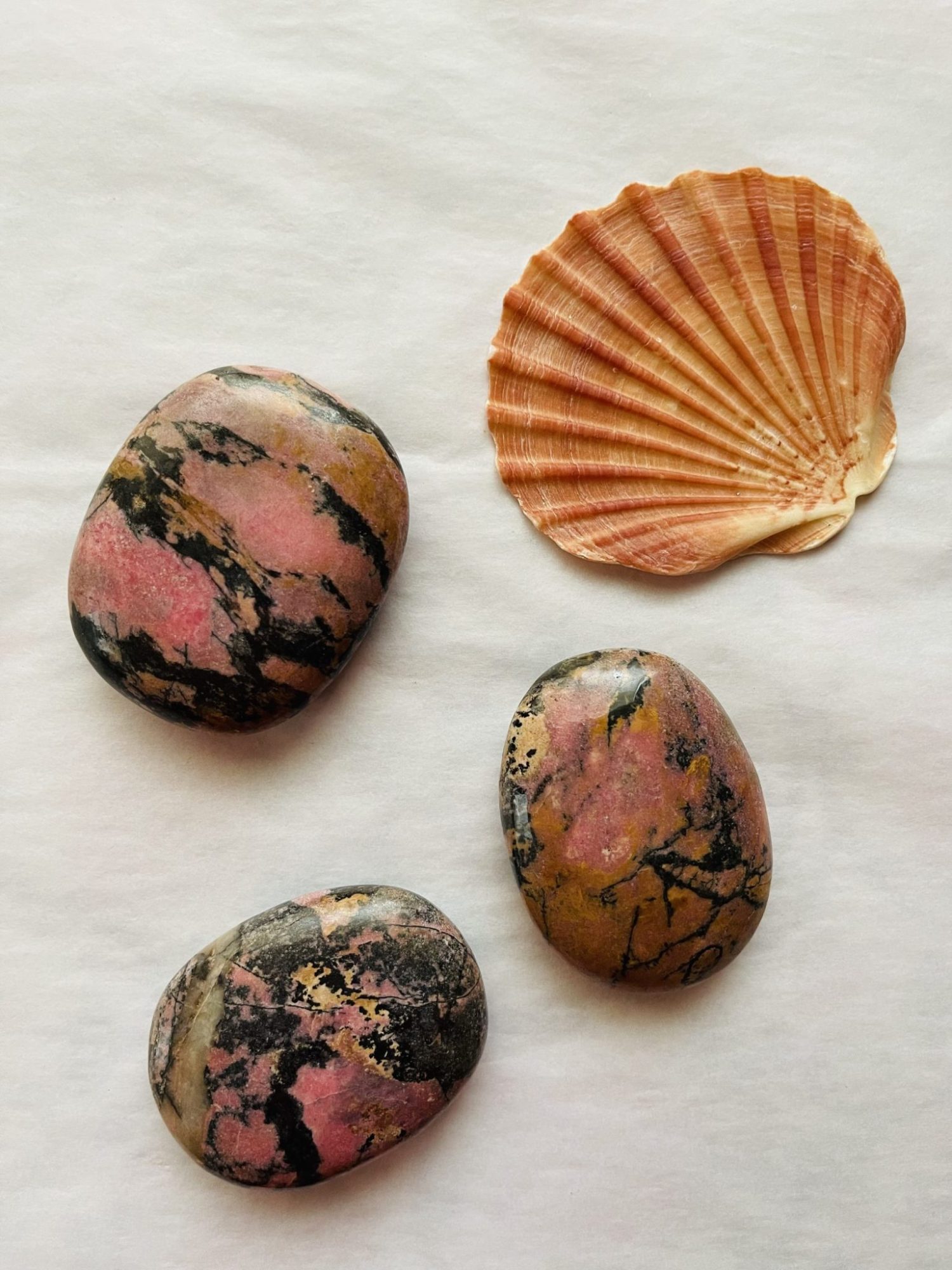 Known for its pink colour with black, manganese oxide inclusions…it helps heal past emotional wounds, reduces anxiety and supports nurturing self-love.