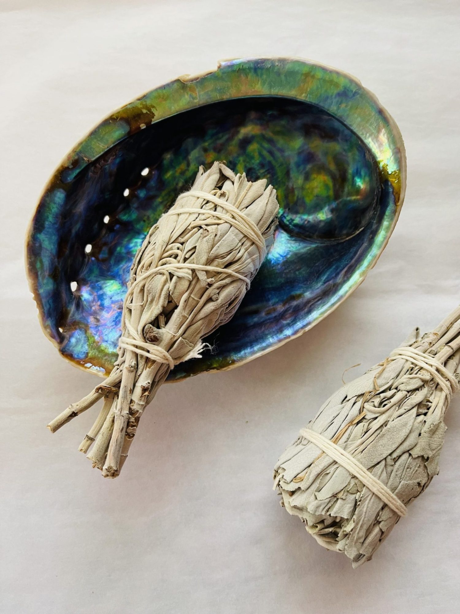White sage smudge is a sacred Native American Indigenous practice of burning White Sage to create smoke, intended to cleanse negative energy, purify spaces and facilitate spiritual blessing.